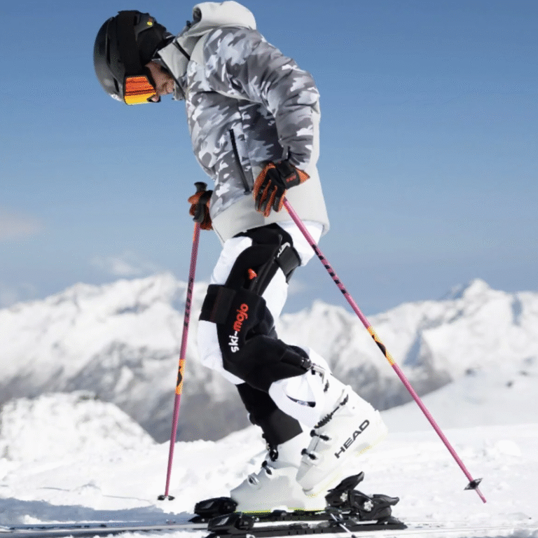 Falling while wearing the Ski Mojo is usually no different than if you fell without one. As the Ski Mojo runs down the side of your leg it works as side impact protection bars, just like those on a car and will often reduce the affect of any impact. However, under certain circumstances: e.g. if you fall on the end of the upper telescopic rod, it may cause bruising (in the same way as if you fell on your keys if you had them in your pocket. There is a layer of Neoprene between your leg and the rod, which can usually be folded over and “doubled-up”; you may wish to add additional padding to fit between these rods and your legs to further help reduce the risk of bruising.