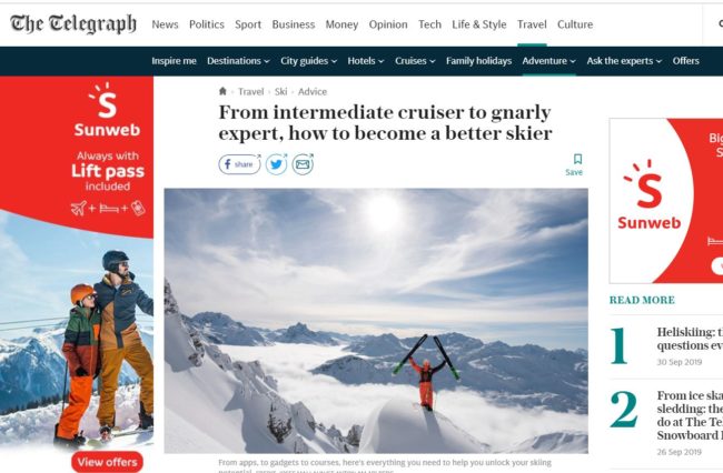 We were delighted to see the Ski Mojo included in this article in The Daily Telegraph: ‘From intermediate cruiser to gnarly expert, how to become a better skier’. The Telegraph accurately identified the benefits of a Ski Mojo: Lost your mojo thanks to years of asking your knees to bounce down lumpy snow fields?…